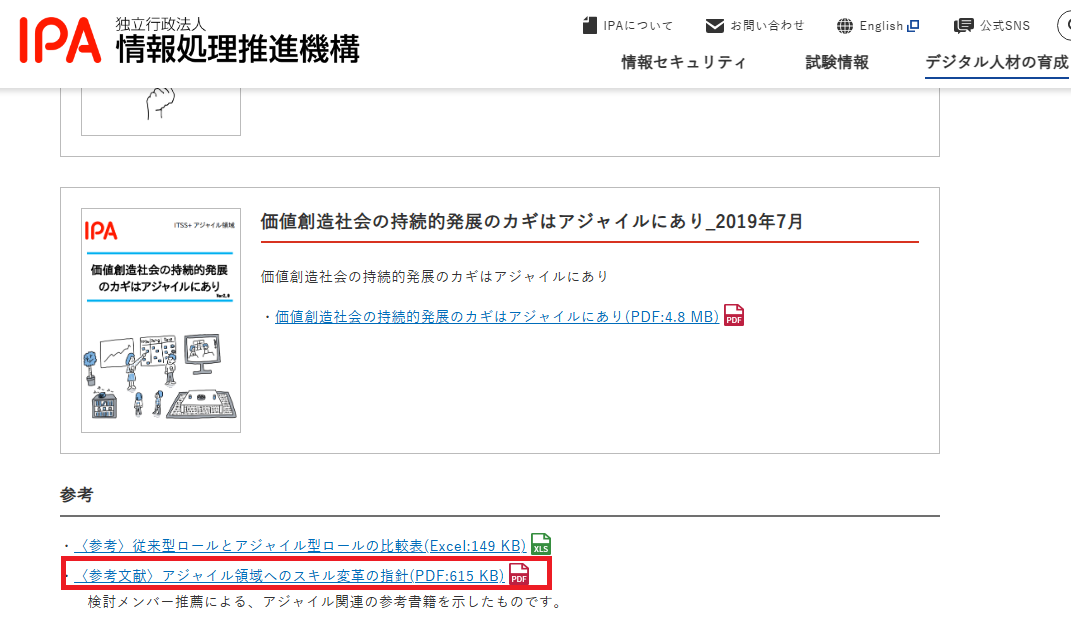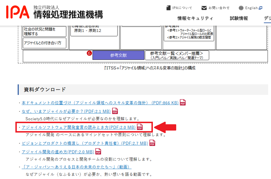 1つ目の方法は、IPA(情報処理推進機構)が公開しているアジャイル領域の解説を読むことです。ここでは、アジャイルの背景、価値観、求められるスキルが体系的に整理されています。PMI公式資料とは切り口が異なりますが、日本のITプロジェクトを前提に書かれているため理解しやすく、PMP試験の判断問題にも応用しやすい内容でした。アジャイル50%時代のPMP対策として、基礎固めに最適です。