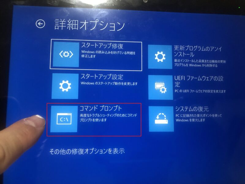 ・Windowsの回復オプション → 修復コマンド入力 → 再起動(回復)