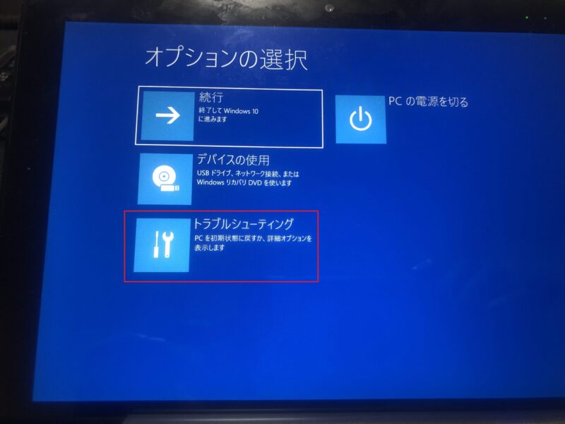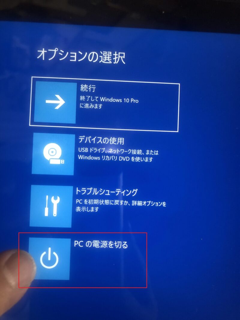 ⑪オプション設定に戻るので、「PCの電源を切る」を選択