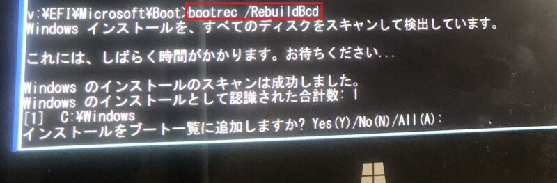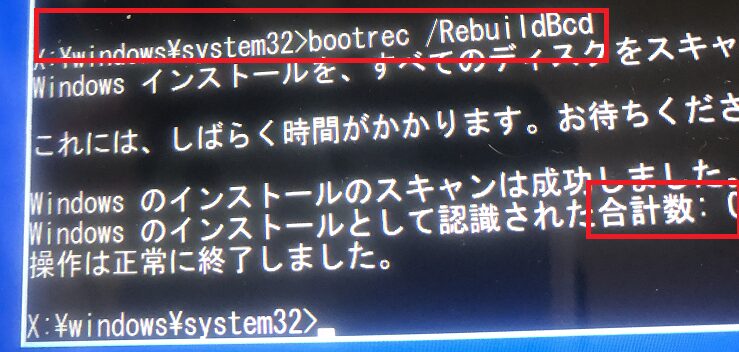 ・一時的にexitコマンドで回避(Windowsは起動)できるが、根本解決はブート構成データの修復