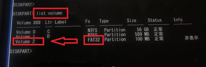 別なVolumeになった場合は、上記画面でFAT32を示しているVolume番号を指定してください