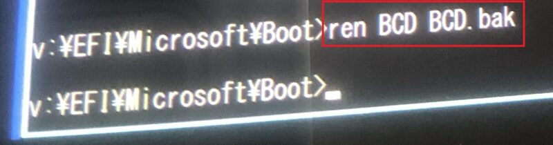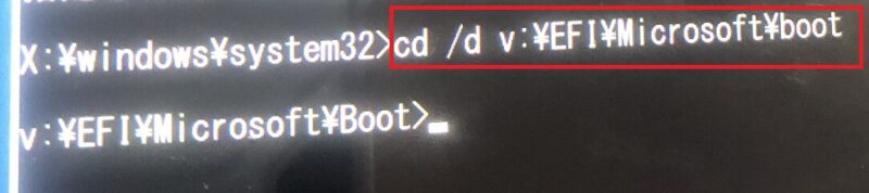 ⑦cd /d V:\EFI\Micrsoft\boot を実行します。