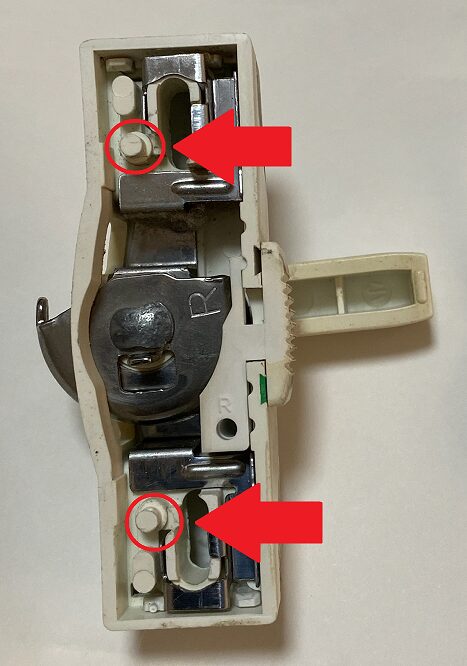 ・バネをはめるポッチが正しければ、鍵の位置が鍵を掛けた状態・開錠した状態で固定されます