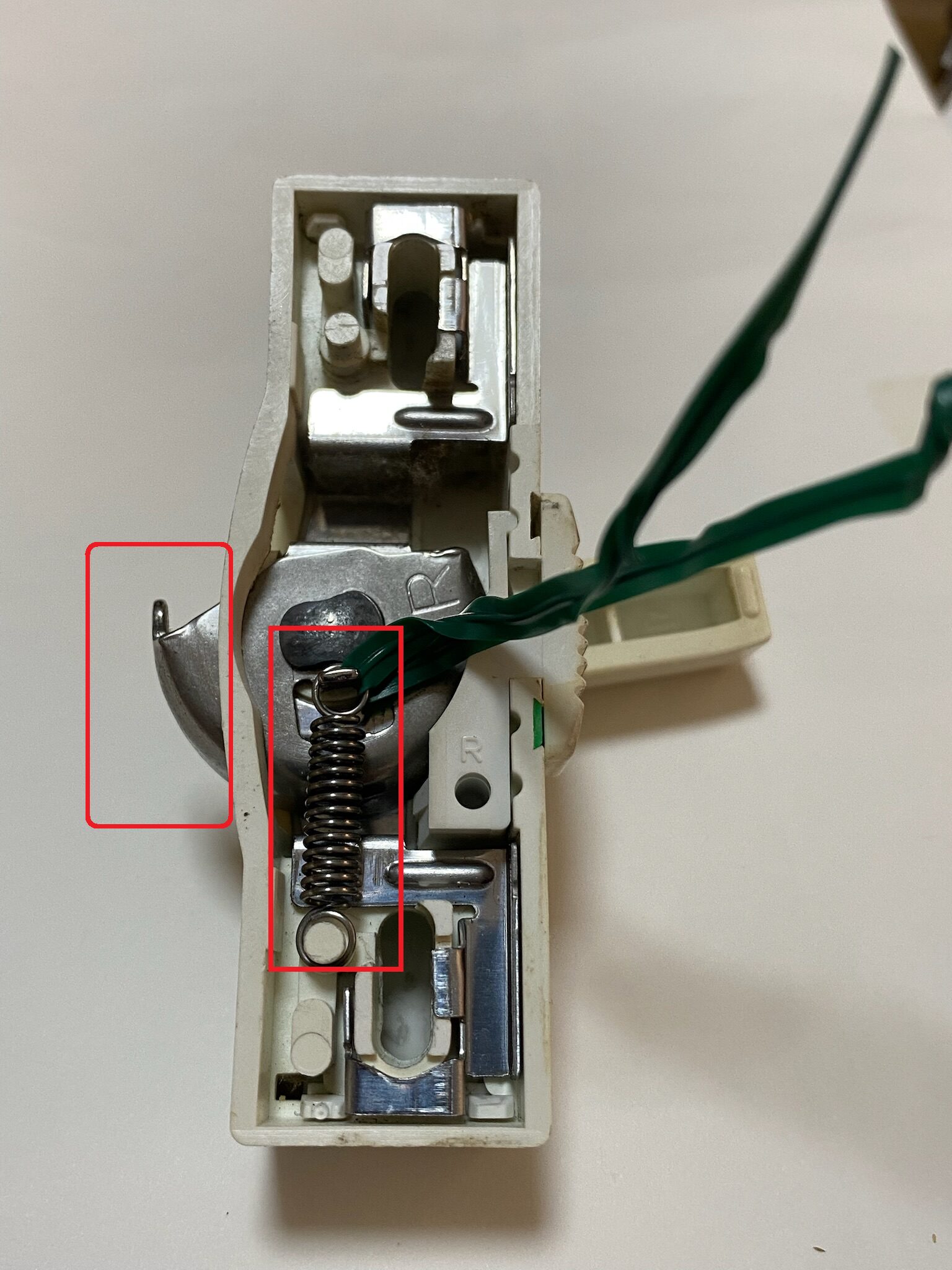 ・間違った場所にはめると、バネが変な方向で固定されてしまい、鍵がうまく動きません。