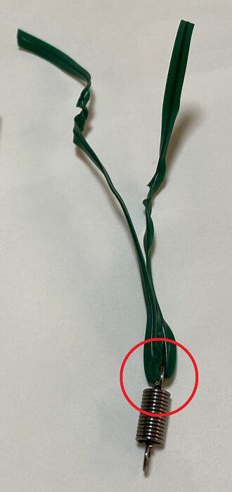 - バネの一方を強めの紐や針金(ねじねじ)に通す