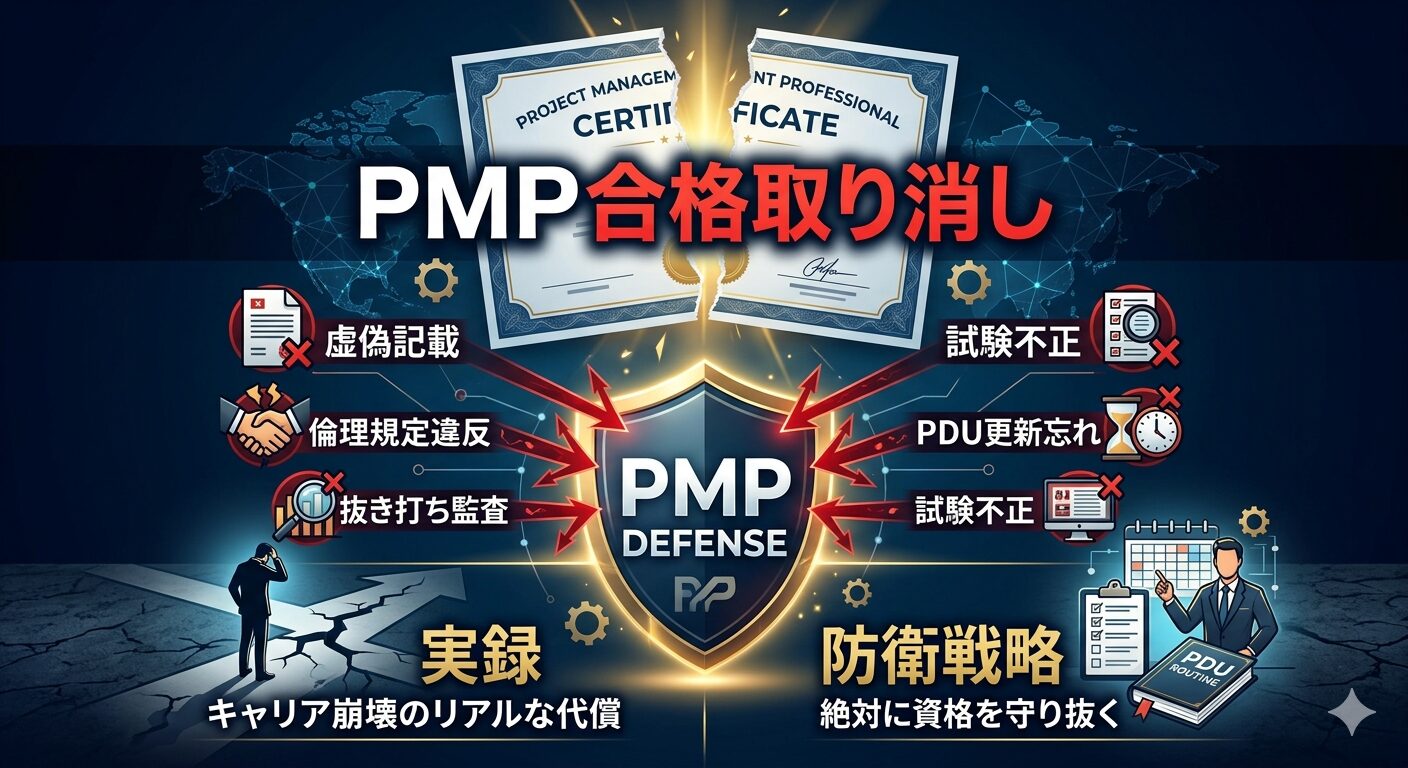 今回は、ITインフラエンジニアとして30年現場を這いずり回り、PMPの重みも怖さも知っている私が、合格取り消しという最悪の事態を避けるための「防衛術」を徹底的に解説します。この記事を読み終える頃には、あなたのPMPは一生モノの武器として、より強固なものになっているはずですよ。