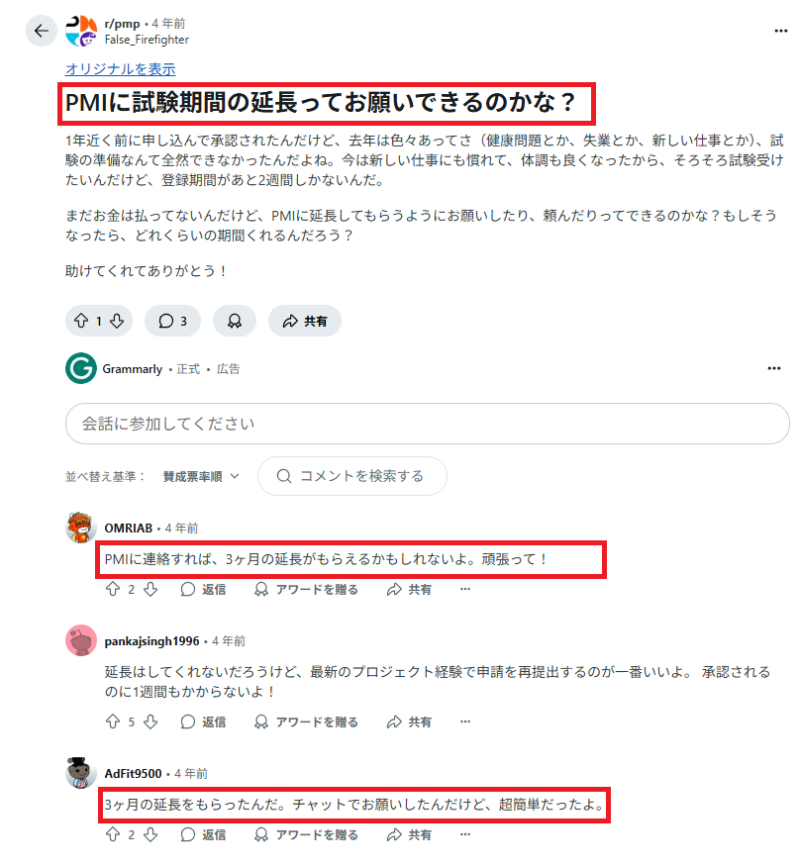 結論:PMIの規定により、受験期限を一度のみ3ヶ月延長することが可能です。