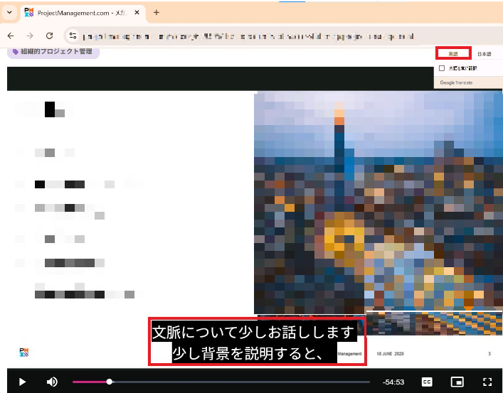 字幕付き動画の場合は、Chromeブラウザで日本語変換が出来ます