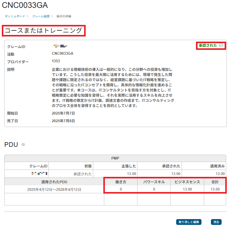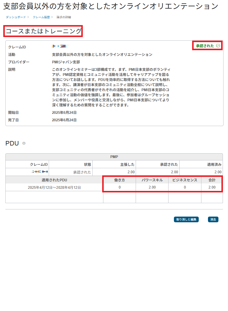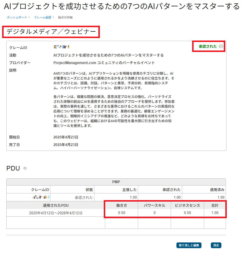 私が実際に申請し、PMIから正式に承認を得ました。ただし、公式ウェビナーのように自動反映されないため、正しい「作法」での手動申請が必要です。